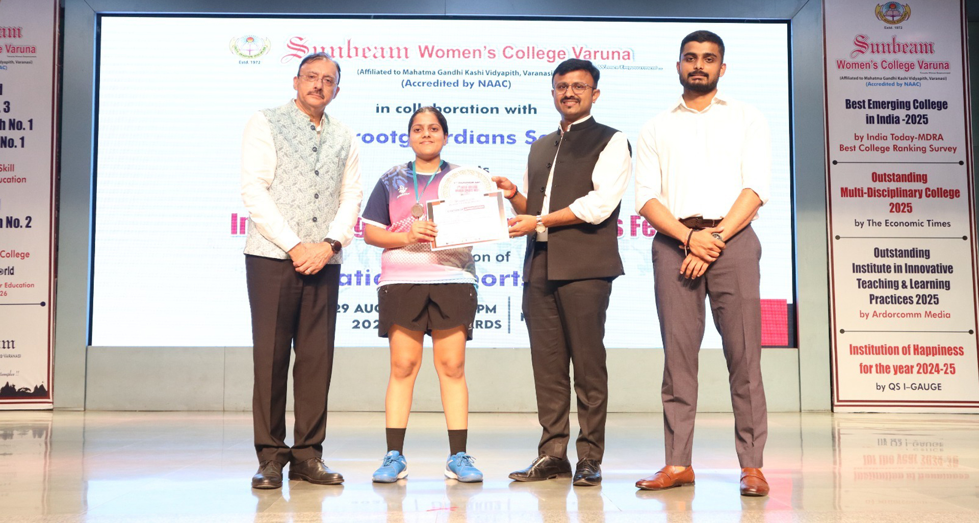 दिनांक 29 अगस्त 25 को हॉकी के जादूगर मेजर ध्यानचंद की स्मृति में राष्ट्रीय खेल दिवस के अवसर पर सनबीम विमेंस कॉलेज वरुणा और ग्रुटगार्जियं सोसायटी ने संयुक्त रूप से अंतरमहाविद्यालयीय महिला खेल महोत्सव का सफल आयोजन किया गया। इस अवसर पर क्षेत्र की विभिन्न कॉलेजों एसएमएस, केआईटी इंस्टीट्यूट, भगवानपुर और सनबीम विमेंस कॉलेज वरुणा की छात्राओं ने उत्साहपूर्वक भागीदारी की और अपनी प्रतिभा का प्रदर्शन किया।