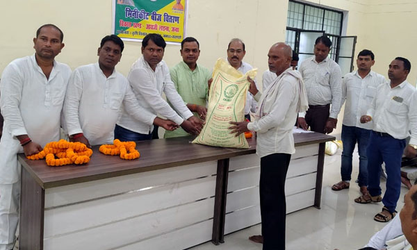 वाराणसी। किसानों भाईयों को समय से गुणवत्ता युक्त बीज की उपलब्धता सुनिश्चित किए जाने हेतु शुक्रवार को विकास खंड काशी विद्यापीठ के राजकीय बीज गोदाम चांदपुर कलेक्ट्री फार्म के सभागार में जिला पंचायत अध्यक्ष पूनम मौर्य की उपस्थिति में ई लॉटरी के माध्यम से चयनित किसान भाइयों में से 90 किसानों को सरसों, 17 किसानों को चना, 20 किसानों को मटर एवं तीन किसान भाइयों को मसूर का मिनी किट निशुल्क वितरित किया गया।