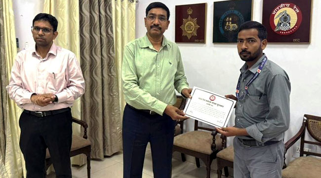 उत्तर रेलवे, लखनऊ मंडल द्वारा संरक्षा से जुड़े कार्यों में उत्कृष्ट योगदान देने वाले 2 रेलकर्मियों को मंडल रेल प्रबंधक सुनील कुमार वर्मा द्वारा प्रशस्ति पत्र प्रदान कर सम्मानित किया। यह कार्यक्रम वरिष्ठ मंडल संरक्षा अधिकारी, समर्थ गुप्ता की उपस्थिति में संपन्न हुआ।