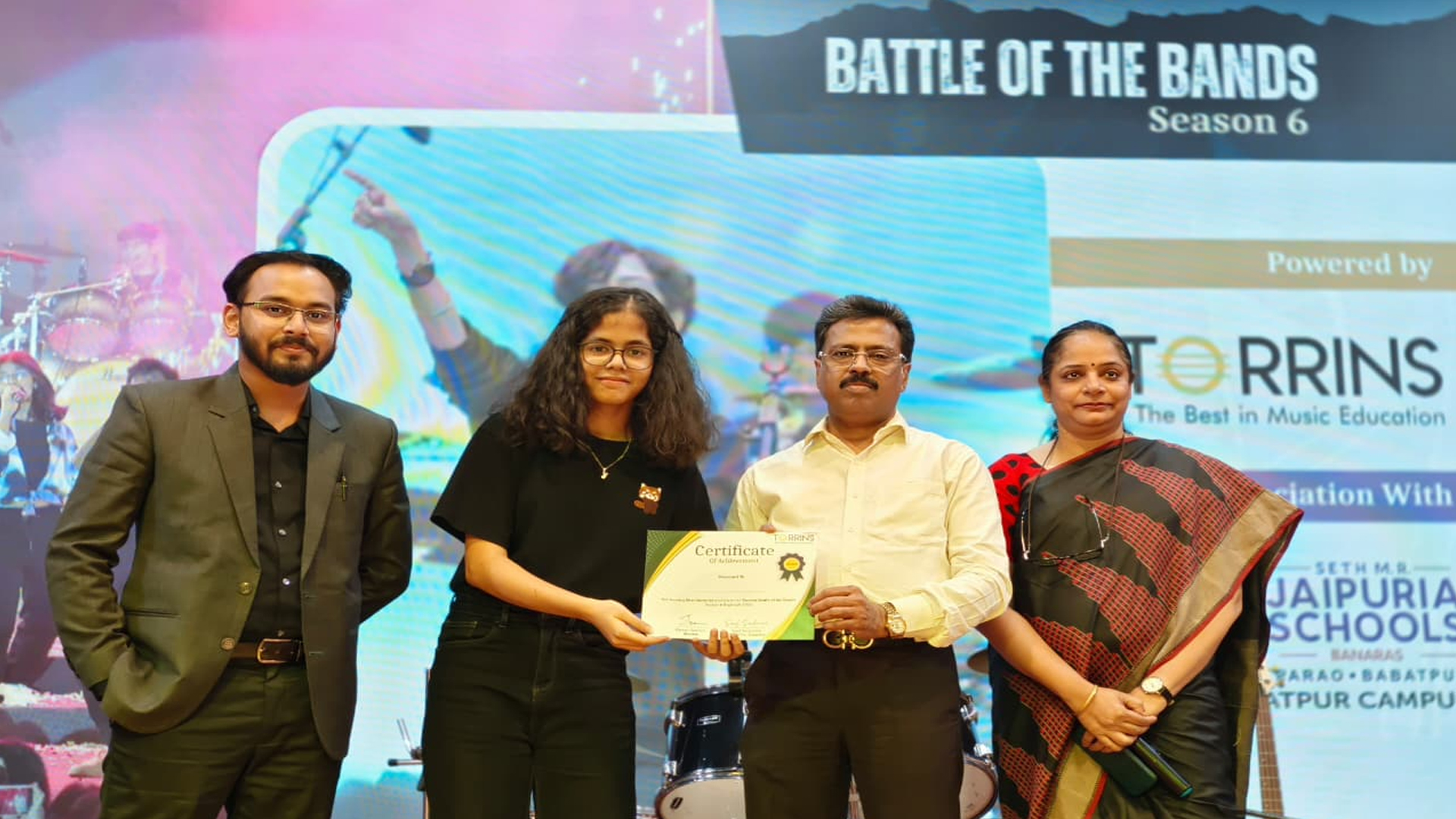 आयोजन के प्रथम चरण में जूनियर कैटेगरी में The Young Vibes (डी.पी.एस. वाराणसी) को शानदार प्रदर्शन के लिए प्रथम स्थान, Jaipurian Constellation (सेठ एम. आर. जैपुरिया स्कूल, पड़ाव कैम्पस) को द्वितीय स्थान एवं The Sharp Notes (सेठ एम. आर. जैपुरिया स्कूल, बाबतपुर कैम्पस) ने तृतीय स्थान प्राप्त किया।