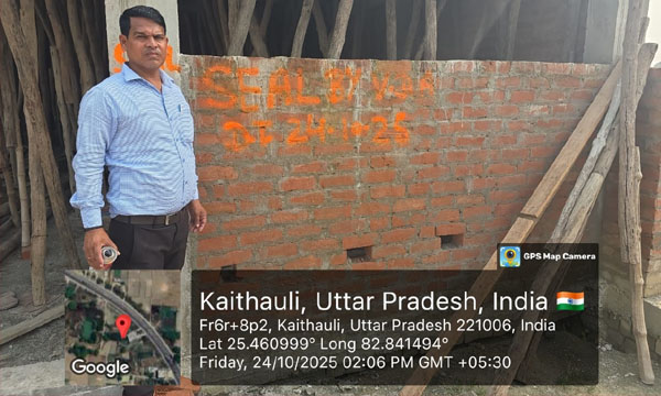 वार्ड-शिवपुर, पुरारघुनाथपुर के अंतर्गत विजई द्वारा बिना मानचित्र स्वीकृत कराये लगभग 150 वर्गमीटर के क्षेत्रफल में भूतल का निर्माण कार्य किये जाने पर उ०प्र० नगर नियोजन एवं विकास अधिनियम, 1973 कीउपाध्यक्ष महोदय द्वारा प्रदत्त निर्देश के क्रम में जोन-01 में अवैध निर्माण के विरुद्ध सील की कार्यवाही सम्पादित की गयी सुसंगत धारा-27, 28 (i), व 28 (ii) के अन्तर्गत दिनांक 24/10/2025 को नोटिस की कार्यवाही करते हुए स्थल को सील किया गया l