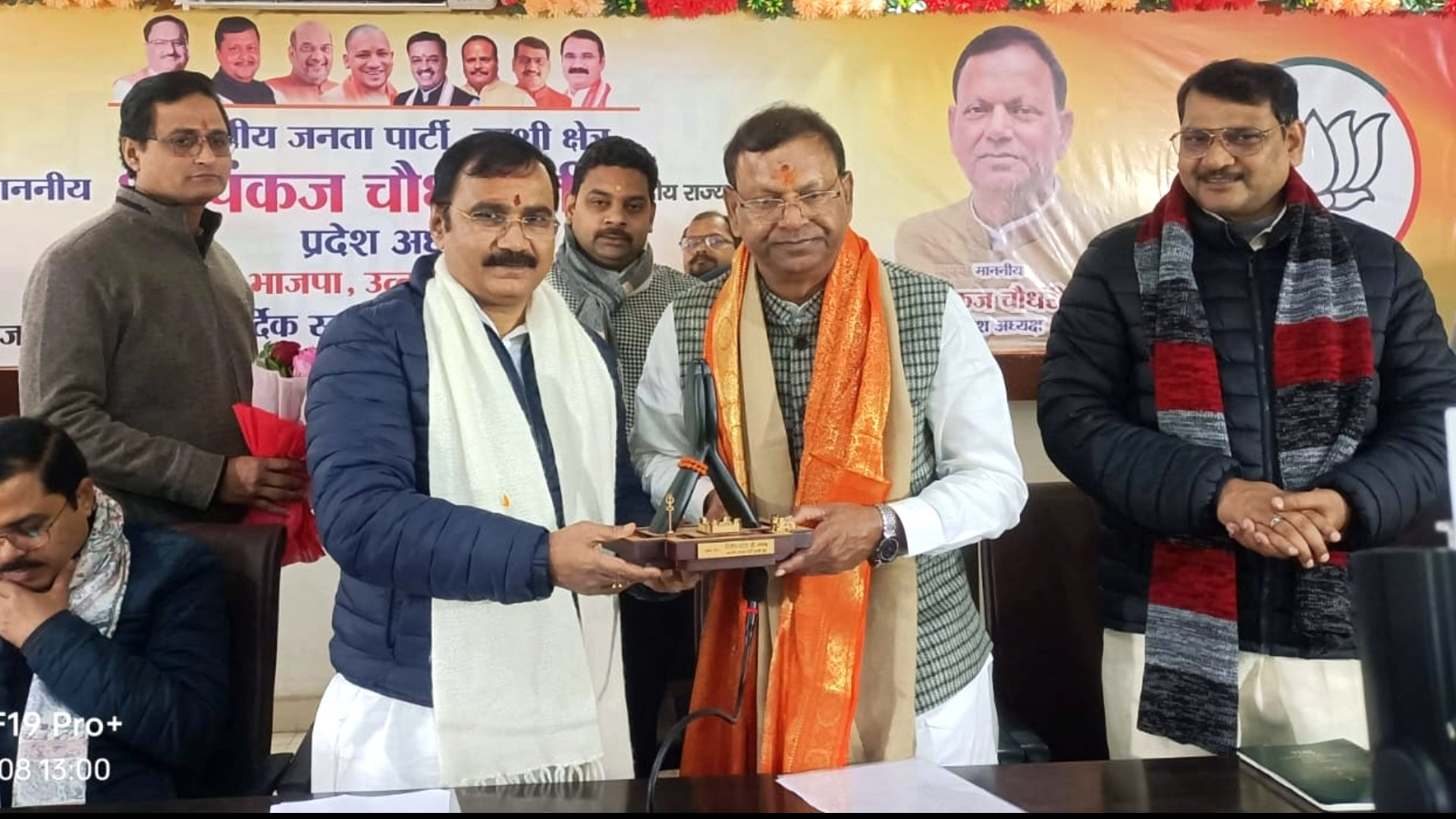 रोहनिया स्थित क्षेत्रीय कार्यालय पहुंचने पर भाजपा प्रदेश अध्यक्ष पंकज चौधरी का हजारों कार्यकर्ताओं ने गाजे-बाजे, शंखनाद, ढोल-नगाड़ों, पुष्पवर्षा और “हर-हर महादेव” के उद्घोष के साथ भव्य स्वागत किया। कार्यालय के मुख्य द्वार पर महिला मोर्चा की कार्यकर्ताओं ने आरती उतारकर तिलक किया। इसके बाद पंडित दीनदयाल उपाध्याय के चित्र पर माल्यार्पण किया गया।