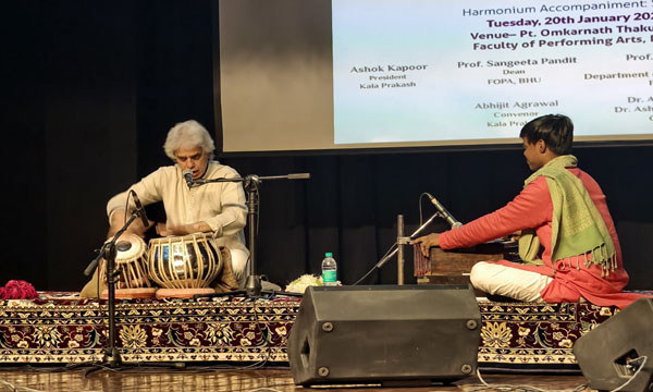 वाराणसी। कला प्रकाश एवं संगीत एवं मंच कला संकाय, काशी हिन्दू विश्वविद्यालय के संयुक्त तत्वावधान में महान तबला सम्राट पद्म विभूषण उस्ताद ज़ाकिर हुसैन को समर्पित श्रद्धांजलि कार्यक्रम “Echoes of Laya” का आयोजन मंगलवार, 20 जनवरी 2026 को सायं 4.00 बजे, पं. ओंकारनाथ ठाकुर प्रेक्षागृह, बीएचयू में गरिमामय वातावरण में सम्पन्न हुआ।