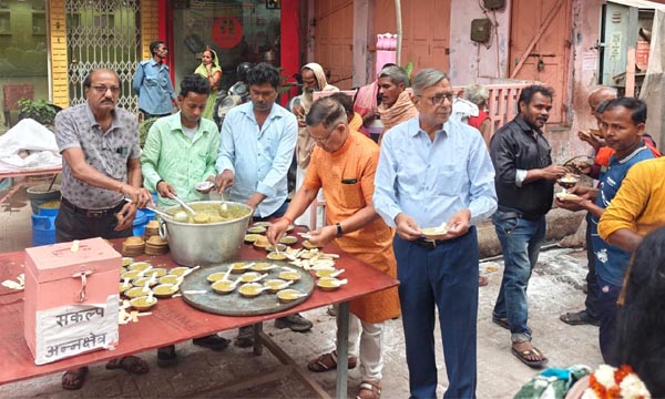 कार्यक्रम की शुरुआत संकटमोचन हनुमान मंदिर में भोग अर्पित कर की गई। इसके बाद कन्हैयालाल गुलालचंद सर्राफ के सामने प्रसाद वितरण शुरू हुआ, जहां बड़ी संख्या में लोग प्रसाद लेने पहुंचे और देर तक वितरण जारी रहा।