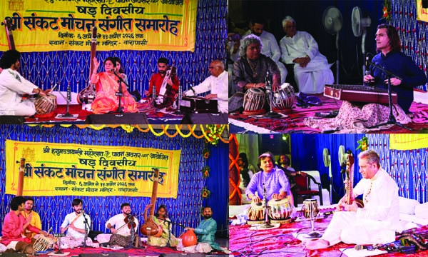 वाराणसी के संकट मोचन संगीत समारोह 2026 की पहली निशा में स्वर, ताल और नृत्य की त्रिवेणी ने श्रोताओं को मंत्रमुग्ध कर दिया। देश-विदेश के कलाकारों ने दी शानदार प्रस्तुतियां।