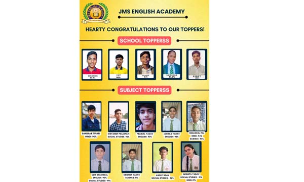 वाराणसी के चोलापुर क्षेत्र स्थित JMS English Academy ने एक बार फिर शैक्षिक उत्कृष्टता का परिचय देते हुए कक्षा 10वीं का परिणाम शत-प्रतिशत दर्ज किया है। विद्यालय के विद्यार्थियों ने शानदार प्रदर्शन करते हुए उच्च अंक हासिल किए और संस्थान का नाम गौरवान्वित किया।