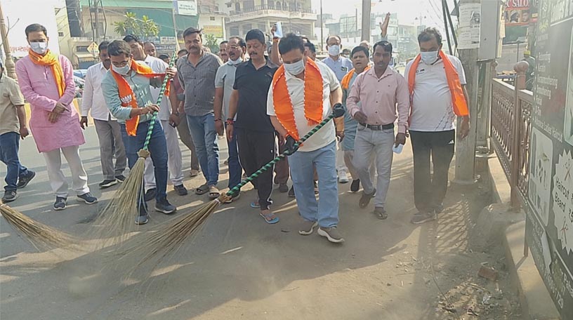 वाराणसी: मंत्री रविंद्र जायसवाल ने पहाड़िया चौराहे पर चलाया स्वच्छता अभियान, लोगों को दिया जागरूकता संदेश